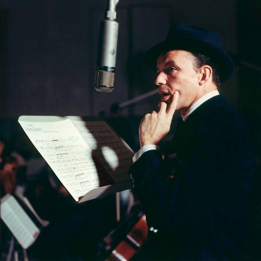 Frank Sinatra durante as gravações de suas músicas. Foto: New Yorker Magazine