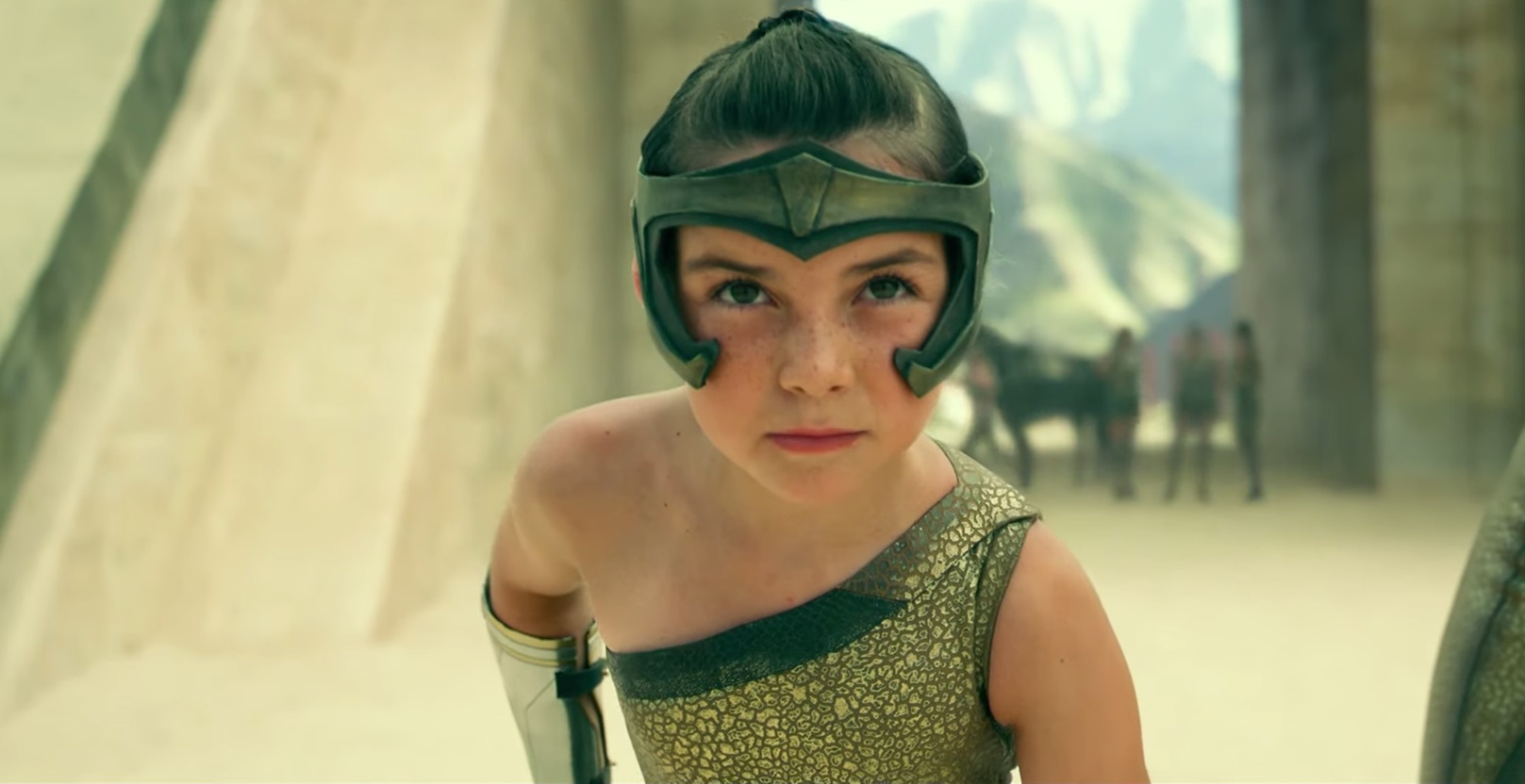 Mesmo sendo apenas uma criança, uma pequena Diana compete e parece ter uma chance razoável de vencer. Isso, até que ela perca a concentração, caia do cavalo e tente arrumar um jeitinho para conseguir a vitória. Mas sua tia Antíope (Robin Wright) a impede, ensinando Diana que “nada de bom nasce da mentira, e a grandeza não é o que você pensa”.