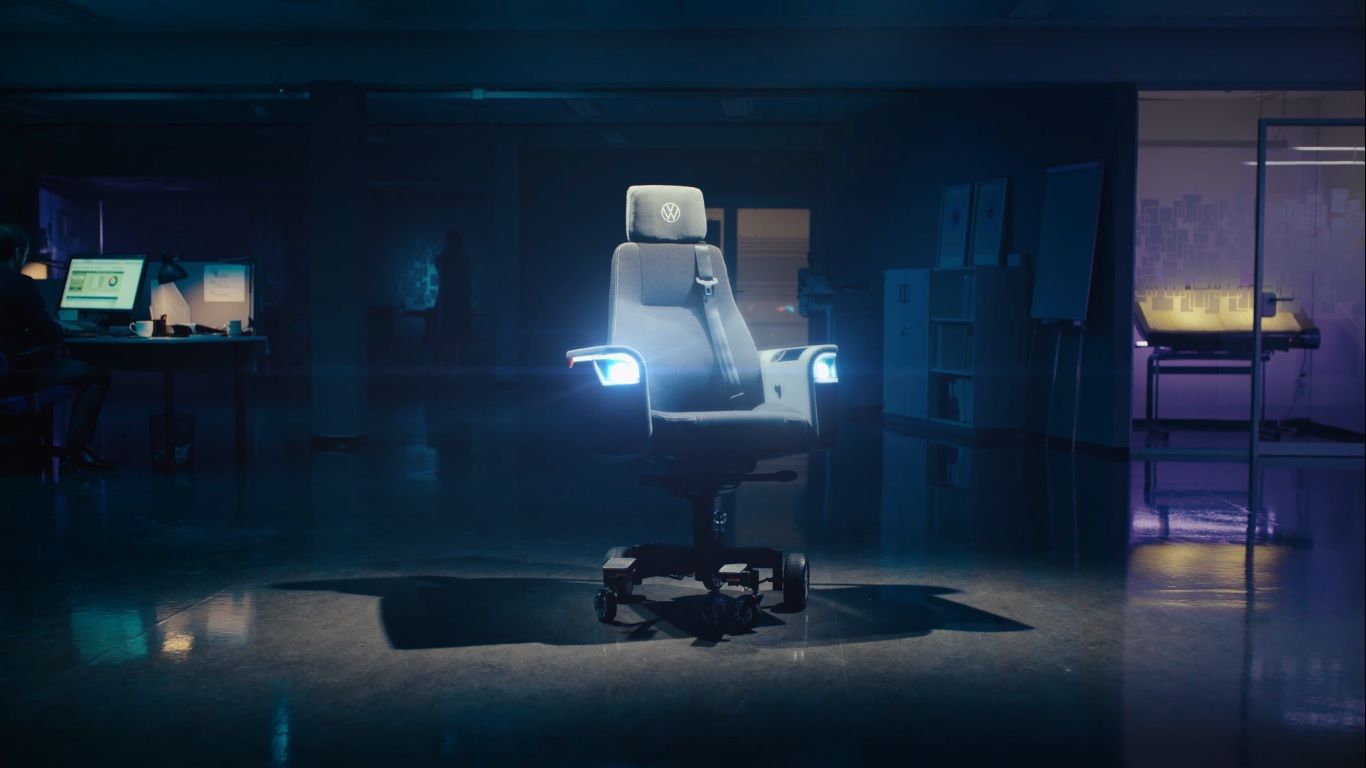 A Volkswagen anunciou que projetou e construiu uma cadeira de escritório motorizada que pode ser conduzida a uma velocidade de até 20 km/h.